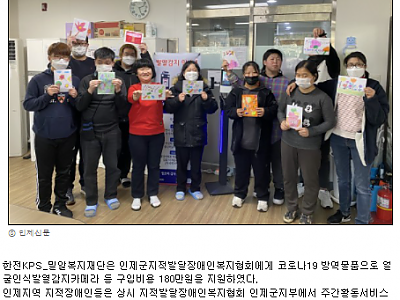 [인제신문] 한전KPS(밀알복지재단), 코로나19 방역물품 지원